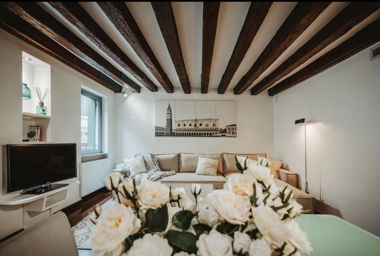 Appartamentodi lusso con vista sui muri del Palazzo Ducale a 2 minuti da Piazza San Marco. Questa residenza di pregio completamente ristrutturata offre 70 mq di comfort esclusivo nel cuore di Venezia, con parquet moderno, arredi alta qualità, due camere matrimoniali e bagno 5 stelle. Posizione impareggiabile immersa tra caffè storici, boutique lusso e Canal Grande.