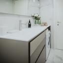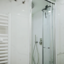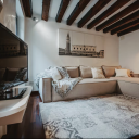 Ampia zona living con divano letto aggiuntivo e smart TV Netflix/YouTube. Cucina semi-aperta attrezzata con microonde, bollitore, macchina caffè, stoviglie complete e prodotti benvenuto. Camera matrimoniale "Rossa" con letto king-size 160x200 cm e armadio spazioso. Camera "Azzurra" con letto francese 140x200 cm e scrittoio. Bagno moderno con doccia spaziosa, finiture pregio, lavatrice, set cortesia alta gamma (sapone, gel doccia). Wi-Fi fibra ultraveloce, aria condizionata autonoma, climatizzazione perfetta ogni stagione. Vicino Ponte Sospiri, Teatro La Fenice, Rialto. Ideale coppie o famiglie.