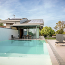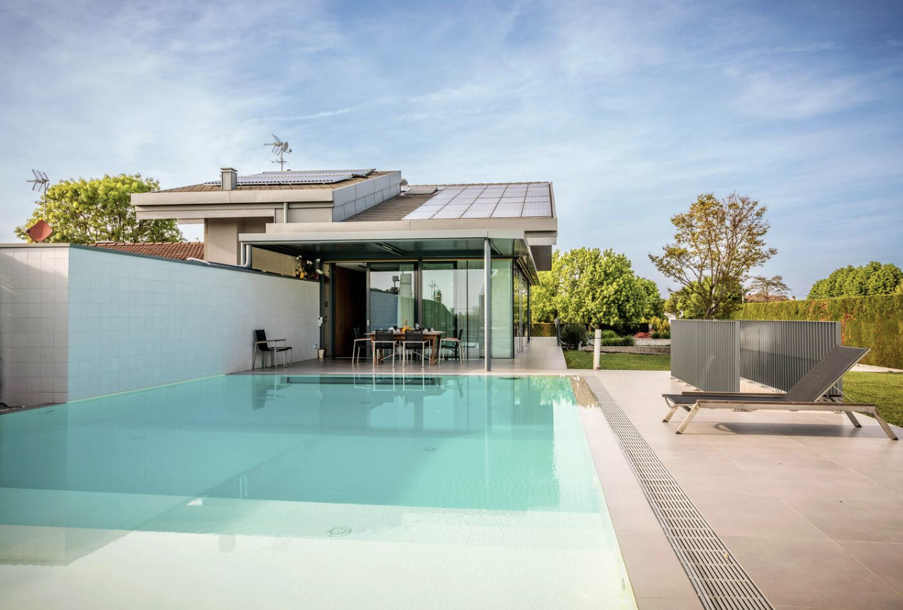 Ville di lusso con piscina privata e area spa completa. Questa villa esclusiva immersa in un giardino riservato offre privacy assoluta, vetrate full-height con vista sul verde, pergolato per cene all’aperto e wellness dedicato con sauna, bagno turco e vasca idromassaggio. Situata tra le colline venete vicino a Padova, posizione strategica per Venezia e Prosecco.