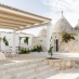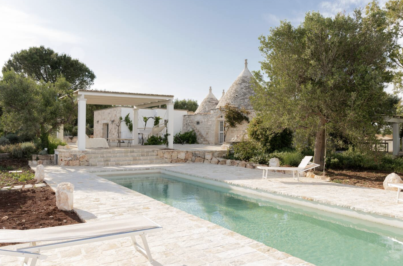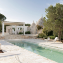 Trullo di lusso con piscina a sfioro in pietra di tufo e vista panoramica sulla Valle d'Itria fino al mare. Questa struttura autentica appena ristrutturata accoglie fino a 9 persone tra trullo principale e lamia indipendente, offrendo privacy assoluta immersa in ulivi secolari. Lungo viale privato conduce a patio panoramico con grande tavolo per cene all'aperto, amache, zona relax e seconda terrazza ombreggiata con tavolo in legno da 10 posti sotto pompeiana, perfetta per aperitivi al tramonto. Barbecue in pietra e tavolo ping pong completano gli spazi esterni scenografici. Situata tra Cisternino e Ostuni, posizione strategica per borghi bianchi (Locorotondo, Martina Franca), spiagge adriatiche a 15 minuti, Alberobello, Castellana Grotte e riserva Torre Guaceto.